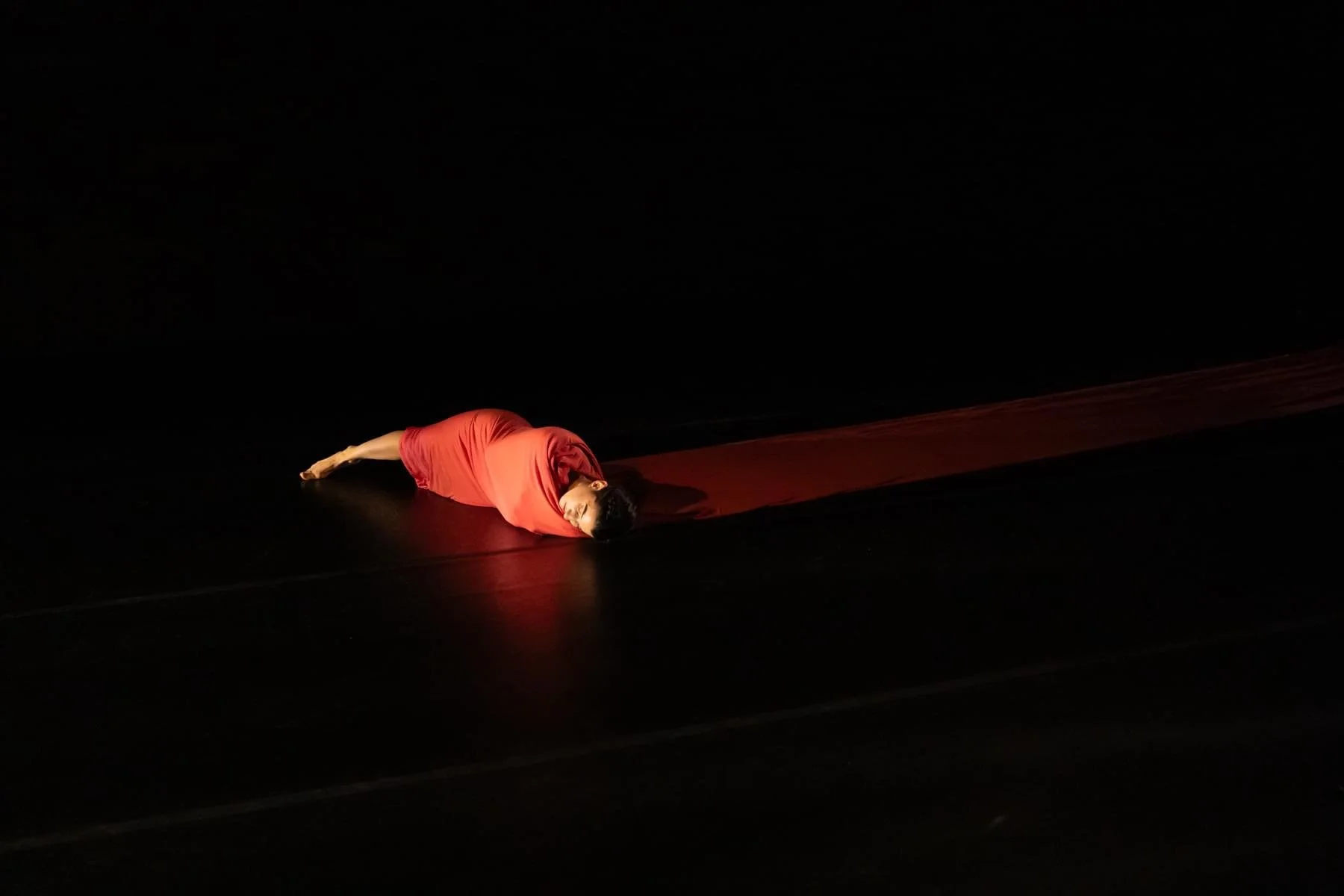 “…glitzy, tongue in cheek and a bit sly. It opens with Sarah McCullough inside of a giant spool of red cloth... Eventually she unravels fabric…and she jumps out to reveal her glittery singlet.”